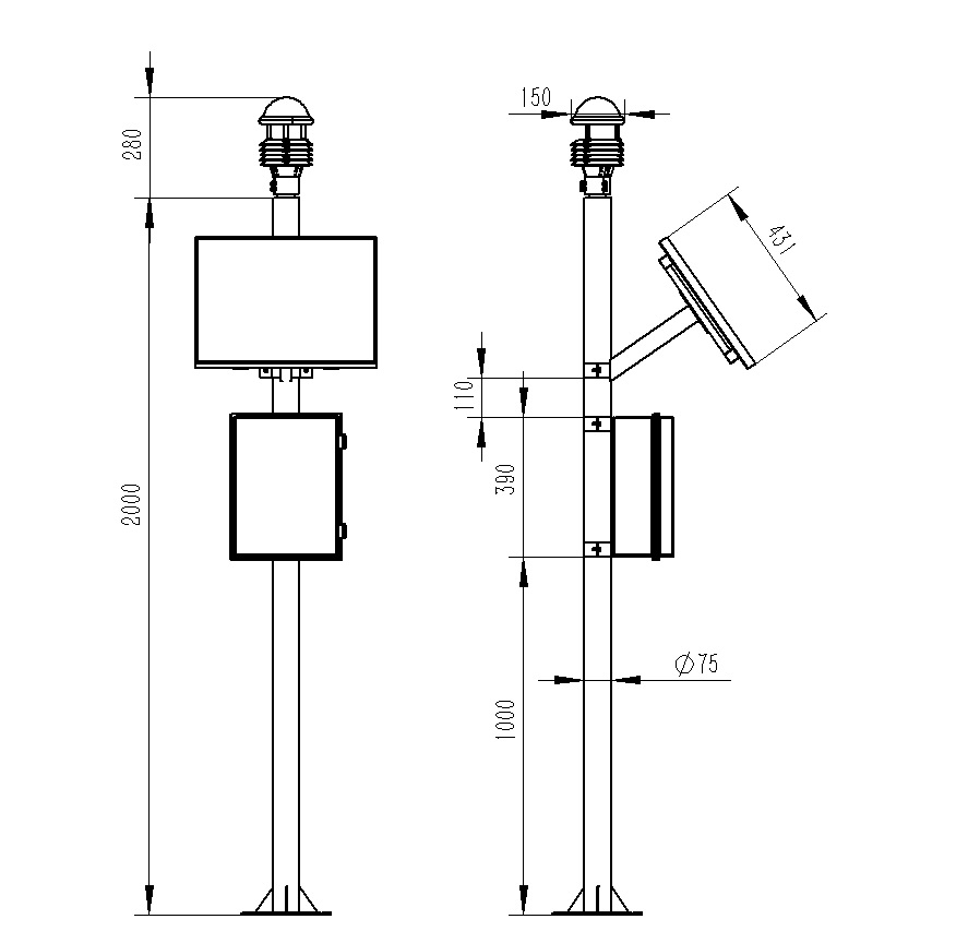 5.兩米碳鋼支架,頂部無(wú)需法蘭盤(pán)可直接套接傳感器